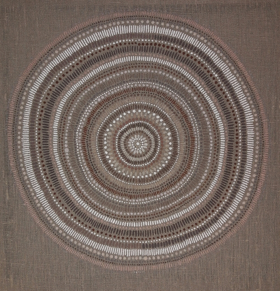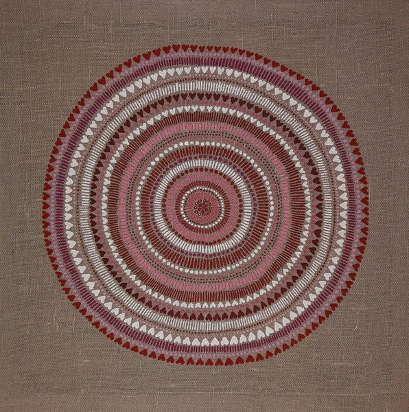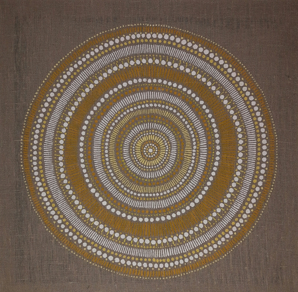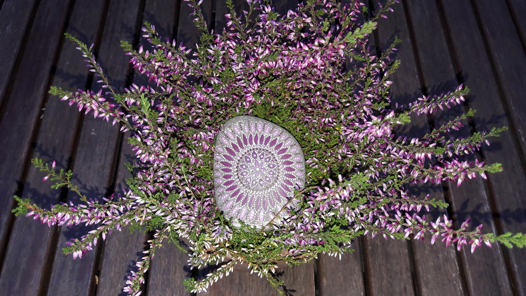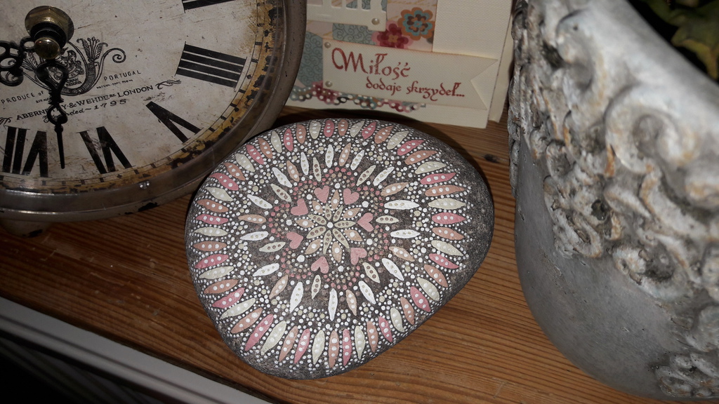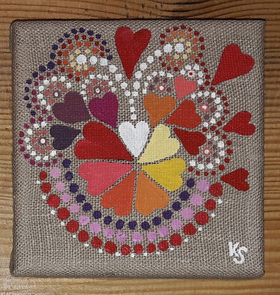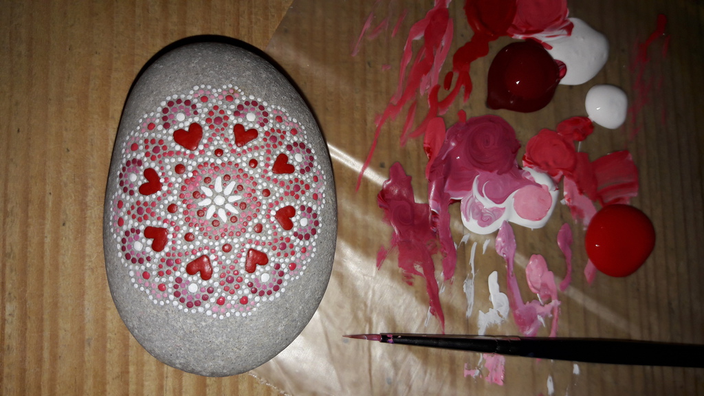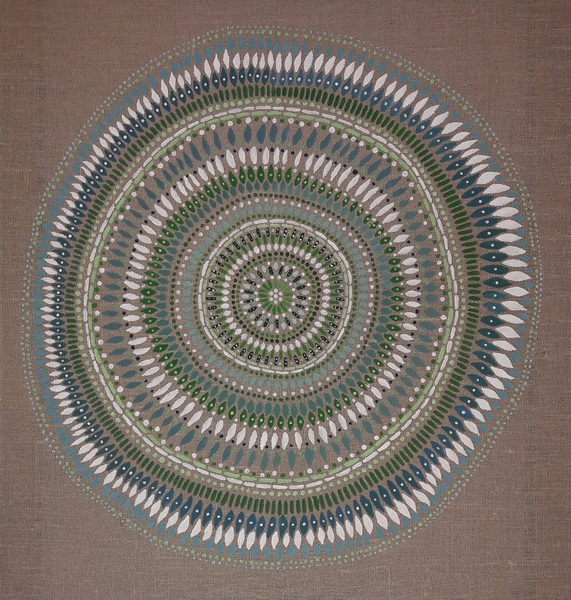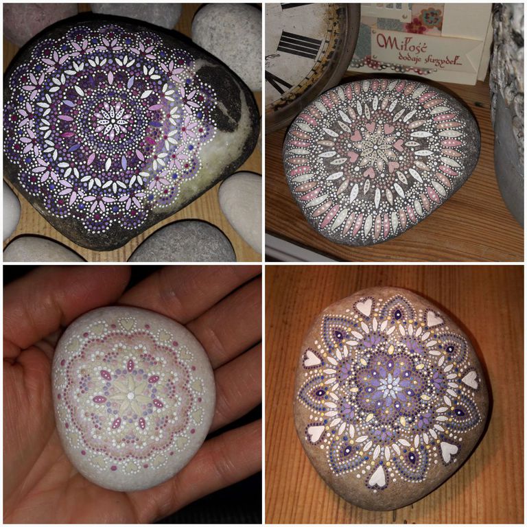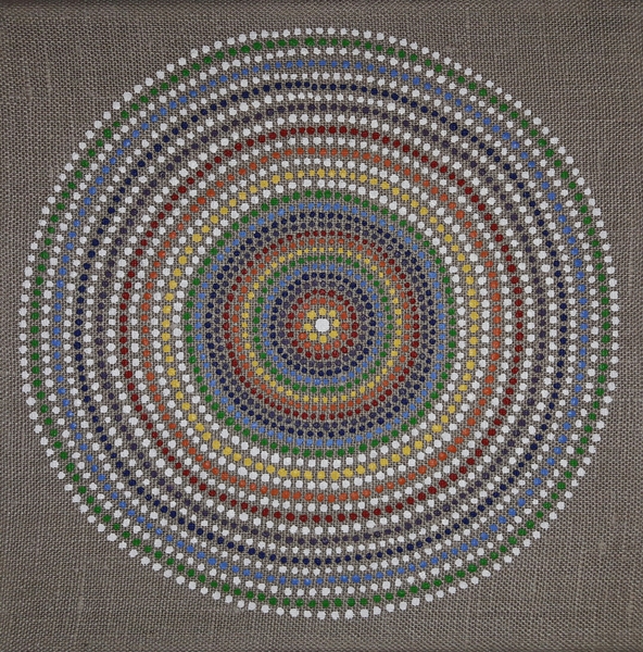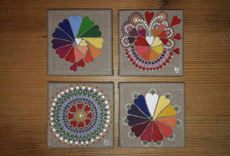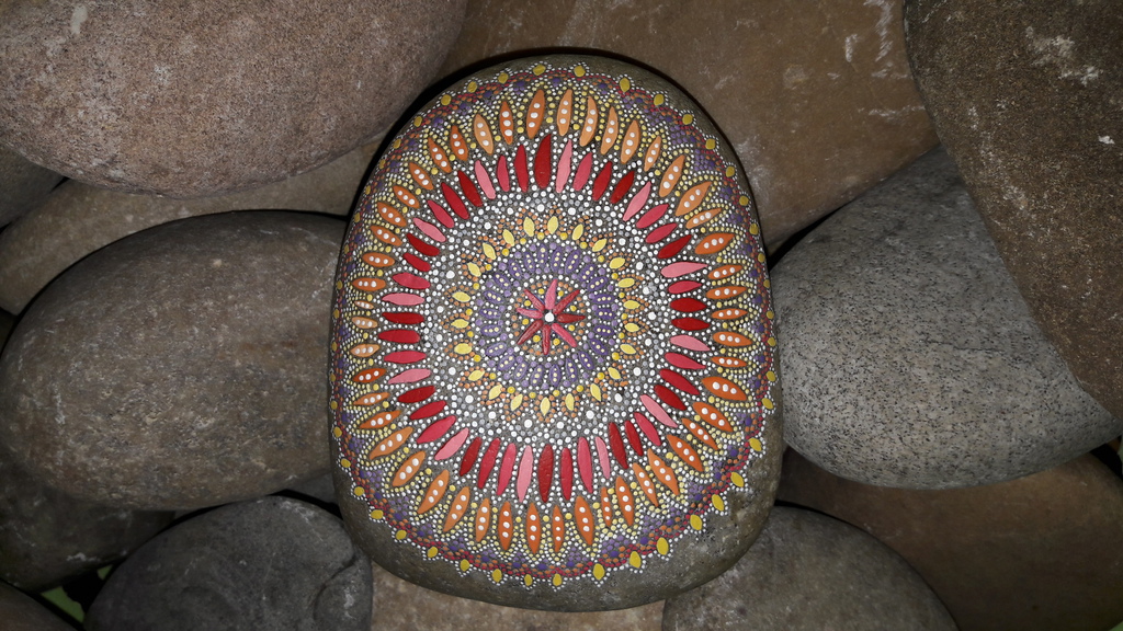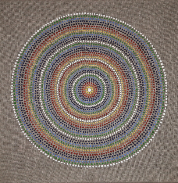 male ich Mandalas auf Steinen und auf Naturleinen.